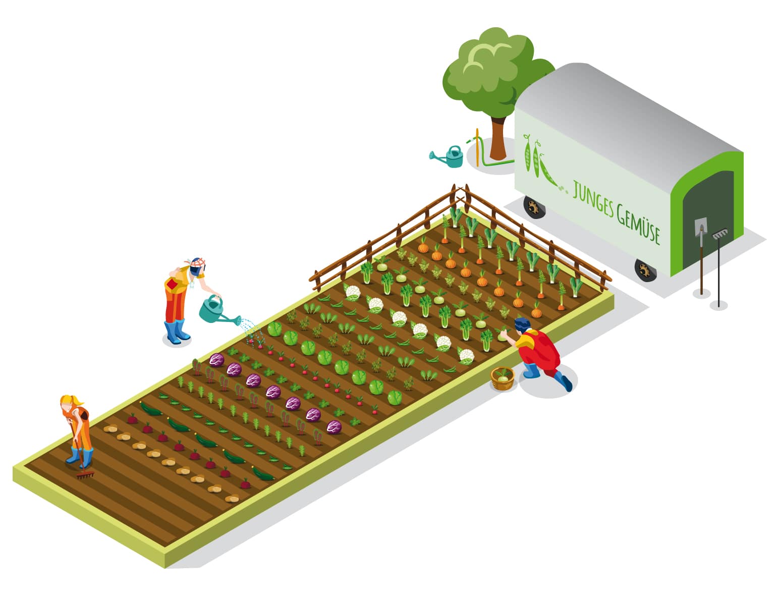 Junges Gemüse ist ein Azubi-Start-Up der AGRAVIS Raiffeisen AG und wurde 2017 von Auszubildenden gegründet. Seitdem vermieten wir jedes Jahr Gemüsebeete an gemüseliebende Gärtnerinnen und Gärtner aus Münster und Umgebung. Im Rahmen der Ausbildung oder des Studiums erhält jährlich der zweite Ausbildungsjahrgang die Möglichkeit, dieses Start-Up zu leiten.