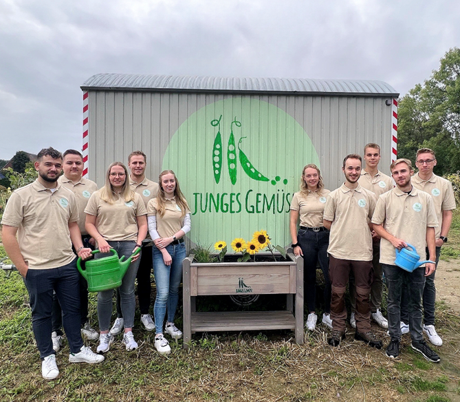 Wir sind der zweite Jahrgang, der das Azubi Start-Up JUNGES GEMÜSE übernehmen durfte. Wir haben es uns zur Aufgabe gemacht, mit frischen und innovativen Ideen die Vermietung von Gemüsebeeten auf unserem Feld zu verbessern, sodass die Gärtnersaison für alle Gärtner und Gärtnerinnen bestmöglich ablaufen wird.